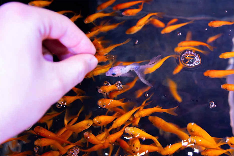 日本の伝統の夜祭りをイメージし、金魚すくいや餌やりなどが体験できます。