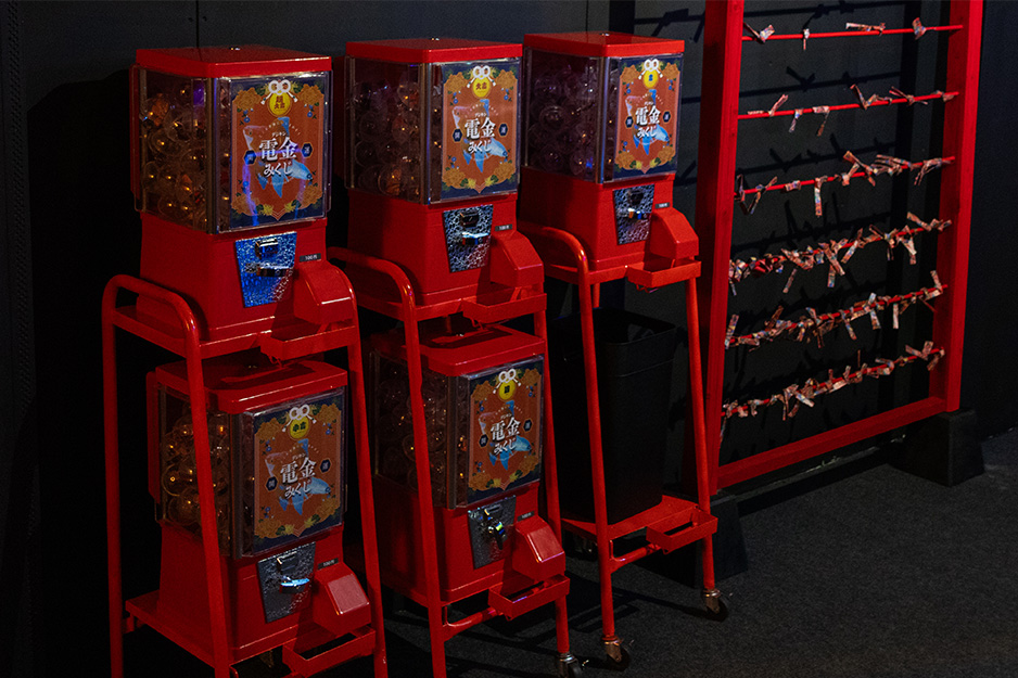 現代の技術を用いたインタラクティブ×金魚すくい×おみくじ。手のひらの上に金魚をすくうと、おみくじがでてきます。